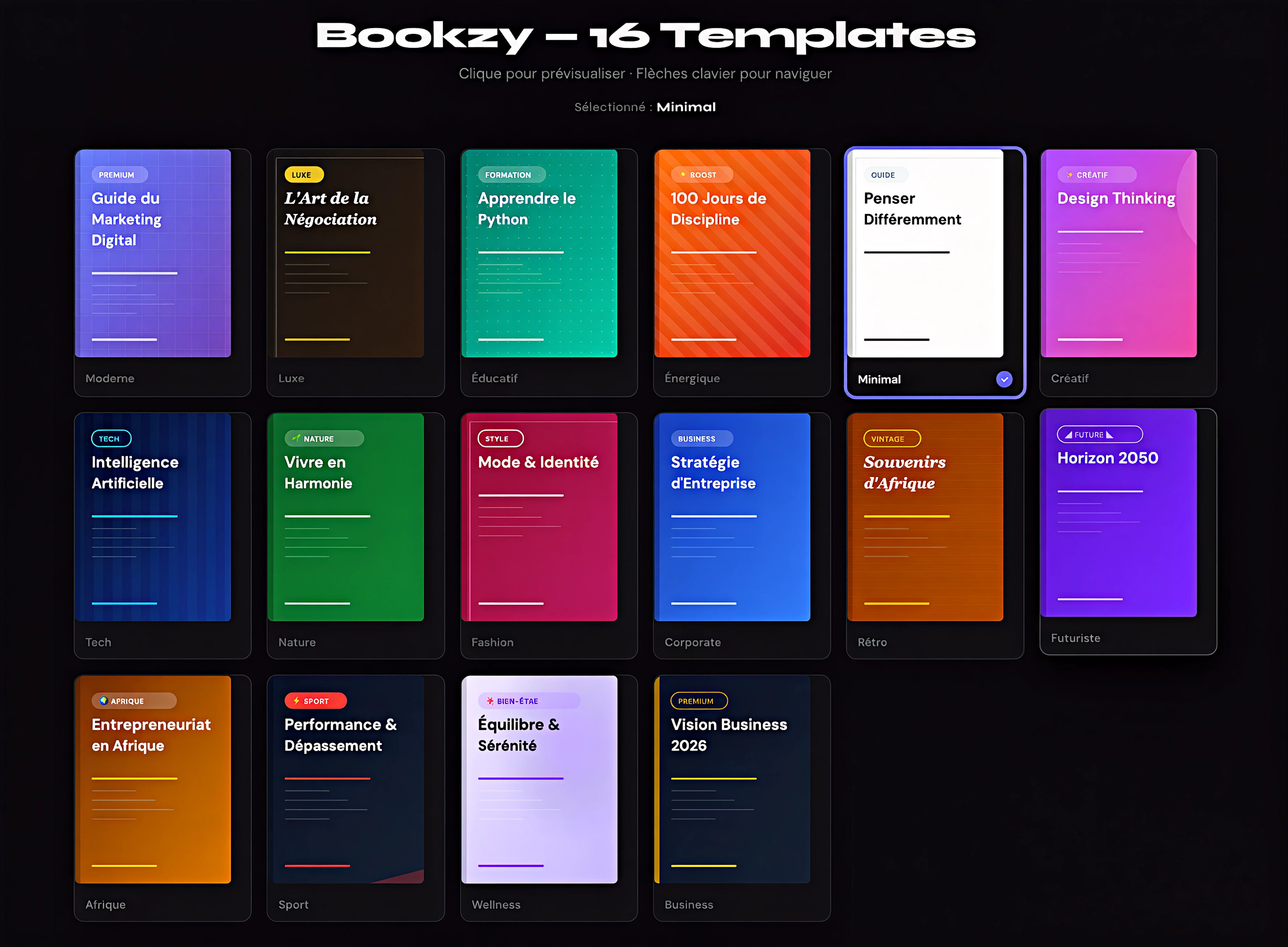 On est passé de 6 à 12 templates entièrement repensés. Chaque template a été designé pour convertir : typographies premium, mises en page aérées, hiérarchie visuelle soignée. Vos ebooks ne ressemblent plus à des documents Word. Ils ressemblent à des produits que les gens veulent acheter.