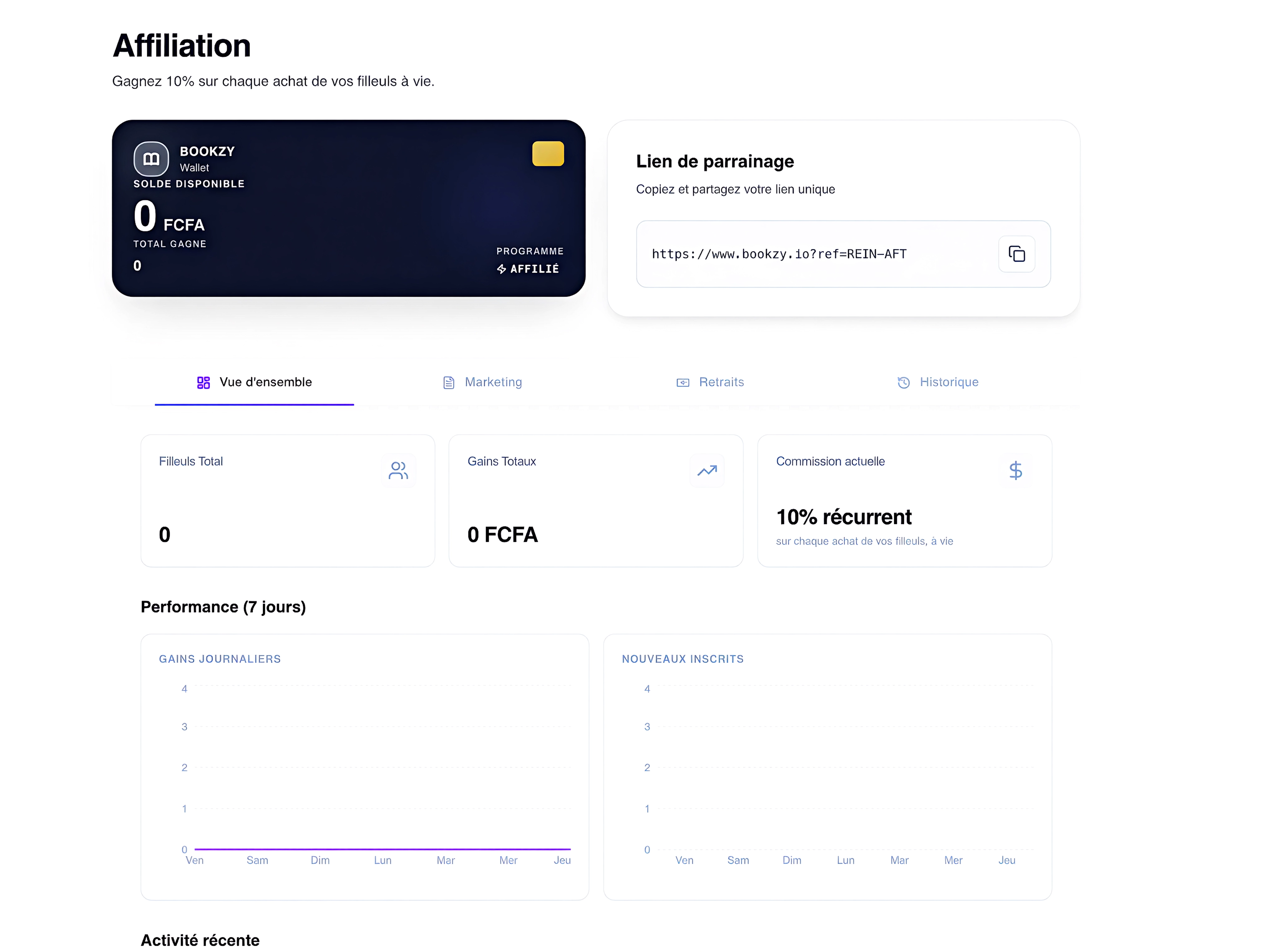 Le programme d'affiliation a été entièrement repensé. Fini la commission fixe de 600 FCFA. Désormais vous touchez 10% sur chaque abonnement de vos filleuls, chaque mois, tant qu'ils restent abonnés. Référencez un Pack Agence à 31 500 FCFA ? C'est 3 150 FCFA par mois, automatiquement, à vie. Votre lien travaille pendant que vous dormez.